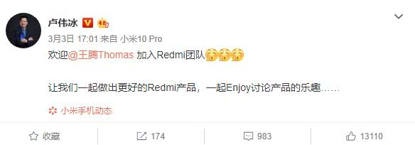 离开了金立的卢伟冰,于2019年1月2日加入小米,任独立后的红米总经理,全球副总裁。