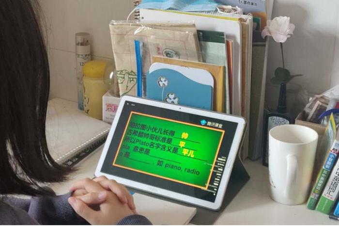 陈先生的女儿在家使用平板上网课