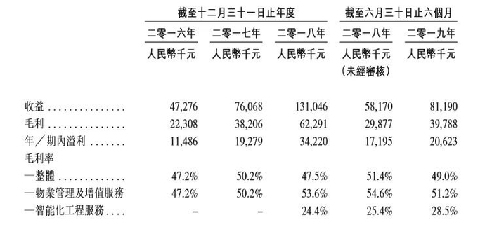 截至2019年的6月30日,兴业物联净利润2060万元。兴业物联称,公司收益总额和纯利润的增加主要是由于往绩记录期内管理项下物业组合持续扩大,以及2017年公司开展智能工程业务所致。