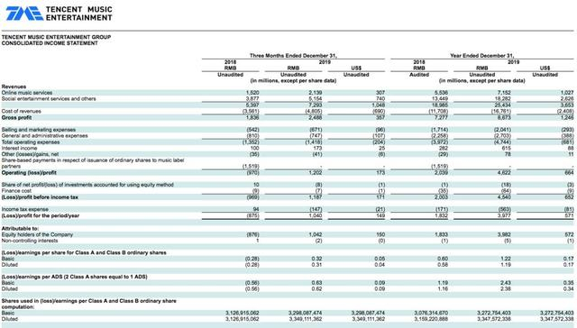更重要的是,接下来,腾讯音乐也将在内容上做更多投入,尤其是长音频格式。“因此,总体来说,2020年的毛利率预期会有所下降。”