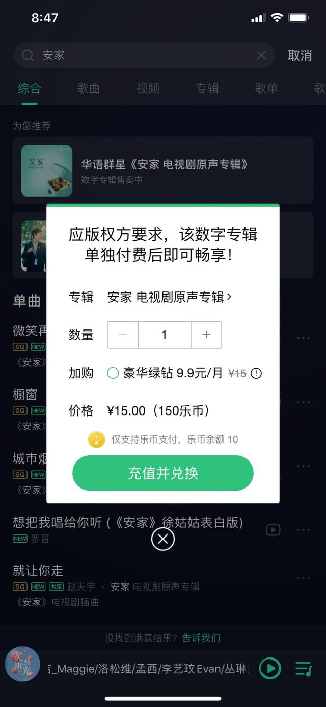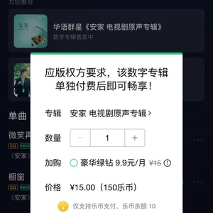 但包括这首歌在内,《安家》剧中的所有插曲,《就让你走》《想把我唱给你听》等,已经独家在QQ音乐上线,而且收听都需要付费。