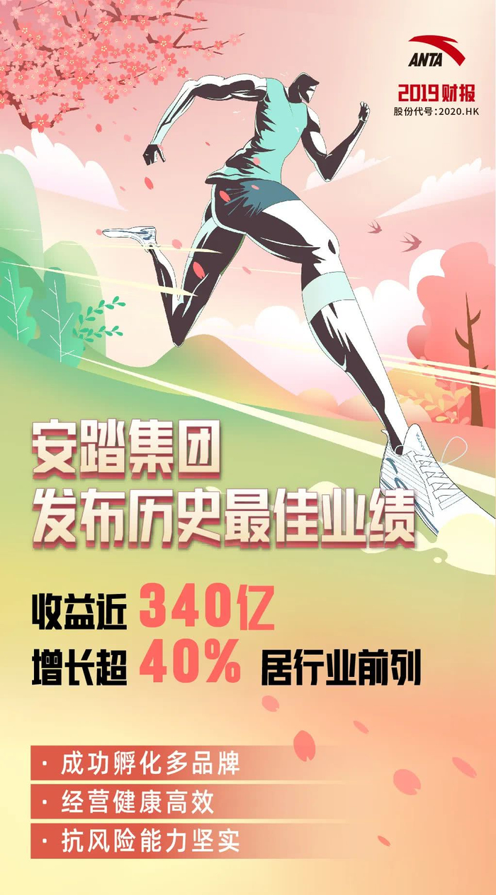 历史最佳年报!安踏2019年营收340亿元,增长超40%!