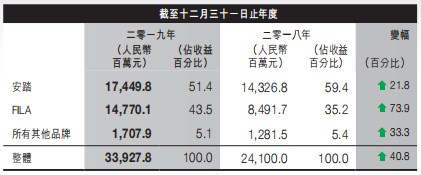 原标题:历史最佳年报!安踏2019年营收340亿元,增长超40%! 来源:闽商报