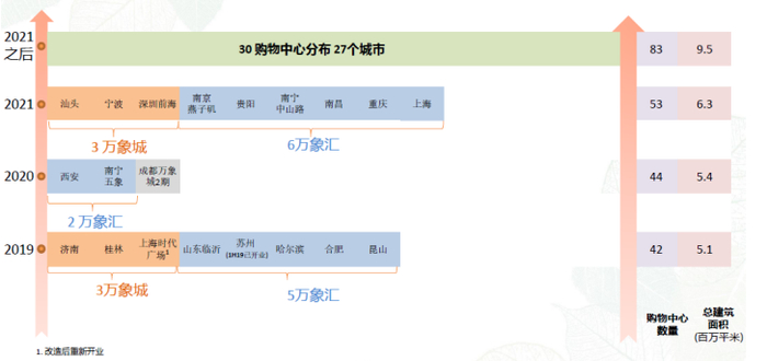 同时,根据公司的发展规划,2019年公司新开业购物中心8家,其中万象城3家、万象汇5家。预计到2021年,华润置地将有53个在营购物中心。