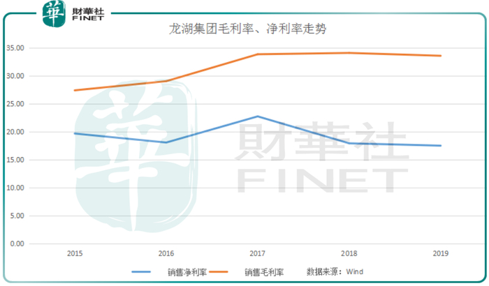 龙湖的毛利率在行业还是有较大竞争力的。2019年大部分主流房企毛利率都集中在30%以下。期内龙湖净利率呈现小幅下滑,但整体维持稳定。