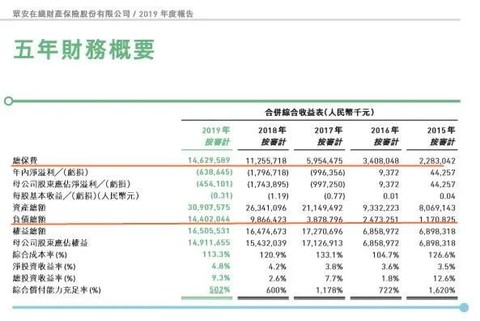 它的经营状况到底如何?赔付率如何?我们可以在它最新的财报中窥得一二。 01 众安保险的2019年财报显示,全年实现总保费人民币146.30亿元(下同),同比增长30%。单看保费,表现良好。 据披露,众安保险2019年的年度保费在全国财险市场上排名第11位;而作为全国第一家互联网保险公司(成立于2013年),依然保持了老大哥的地位,2019年在全国互联网非车财险市场排名第一。 不过,要看赚钱能力,却差强人意,依然难以抵挡自2017年赴港上市以来年年亏损的状态,2019年实现归属母公司净利润-4.54亿元。 相比2018年净亏损-17.44亿元,2017年净亏损-9.97亿元,亏损幅度还是明显收窄了。