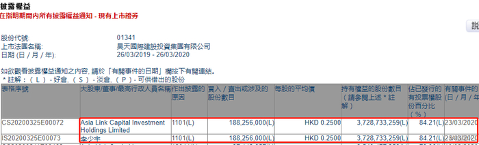 昊天国际建投(01341.HK)获实控人李少宇增持约1.88亿股 涉资4706.4万港元