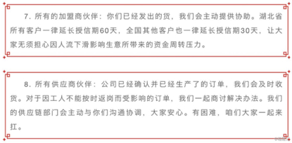 3、对合作伙伴,延长授信与及时收货,共克时艰。