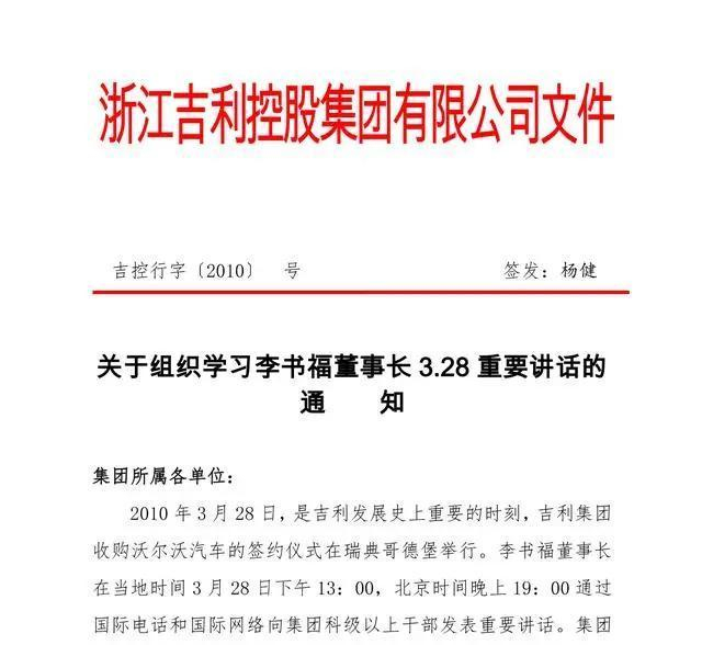不过,在吉利收购沃尔沃的前三天,吉利还是再次召开董事会,对是否收购沃尔沃进行最终决策。当时业界对并不强大的吉利收购沃尔沃充满质疑,面对即将到来的签约之日,李书福要做出最终的选择。而李书福在这场董事会的内部讲话,此前10年从未被外界所知晓,现全文奉上: