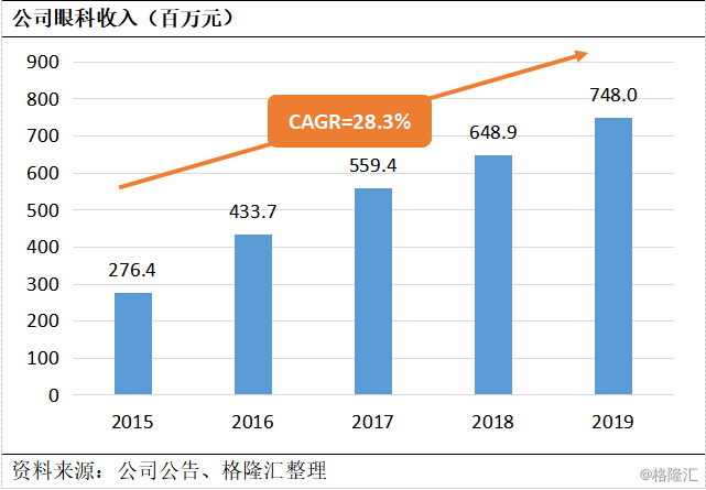 瑞珠18年销售破亿,今年更是同增31%至1.52亿元,受益行业需求和市占提升,预期未来仍将大幅增长,因其主要适应症干眼症患者国内截至19年达2029万,每年以10-20%的速度增长。