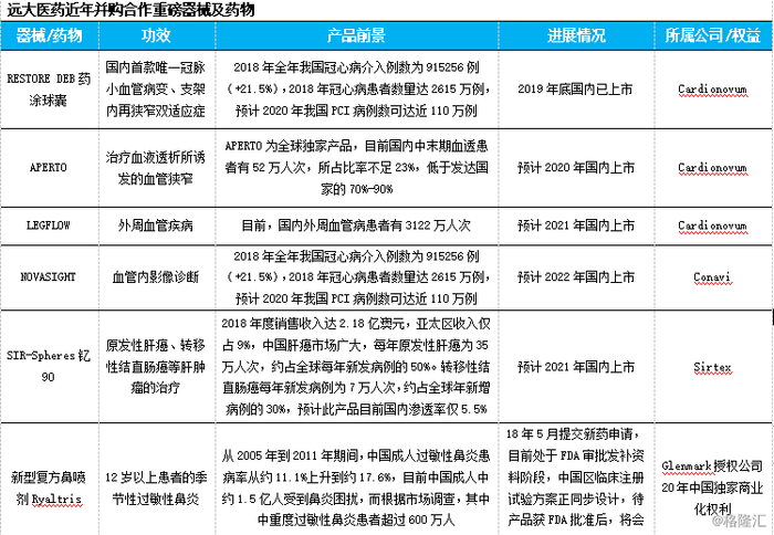 近年,远大医药国际化战略布局初有成效,通过外延合作及并购相继进入了肝癌、心血管高端器械、肿瘤免疫疗法产品、副流感病毒创新药、脓毒症治疗等领域,从产品属性看,几乎都是高精尖、高壁垒产品。