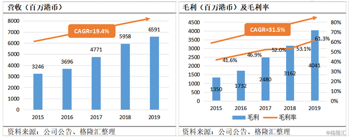 公司19年全年收入65.9亿港币,同比增长10.6%(15-19年营收CAGR=+19.4%);