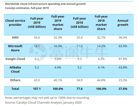 根据研究公司Canalys发布的最新数据显示的结果,2019年全球云计算支出猛增37.6%,达到1071亿美元,增长主要来自于分析和解读不断增多的数据集,以及对新应用程序的DevOps需求。预计2020年IaaS会进一步迎来32%的增幅,达到1410亿美元,今后几年会增长到2024年的2840亿美元。