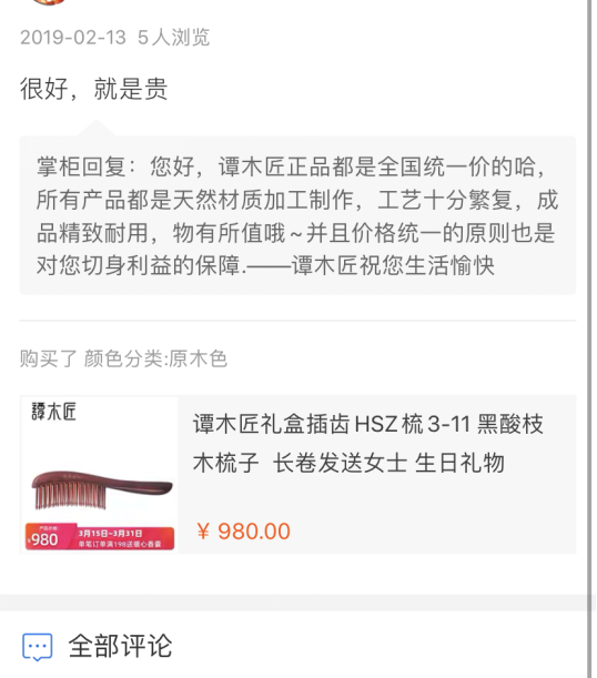 有一个品牌是例外,一把普通的梳子价格动辄卖到100多元,高得能到1000多元。
