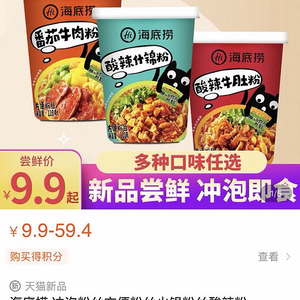 天猫海底捞调味料旗舰店显示,海底捞冲泡米饭分为燕麦青椒酱拌饭、瑶柱香菇酱拌饭等五种口味。方便粉丝则包括酸辣牛肚粉、酸辣什锦粉和番茄牛肉粉三款。目前这两款新品已在线上渠道开售,并在山东、河北、河南等多个省市的线下市场铺货开售。