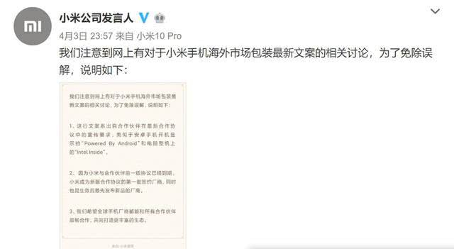 停止无脑黑,小米官方回应小米10包装文案问题,都是谷歌要求