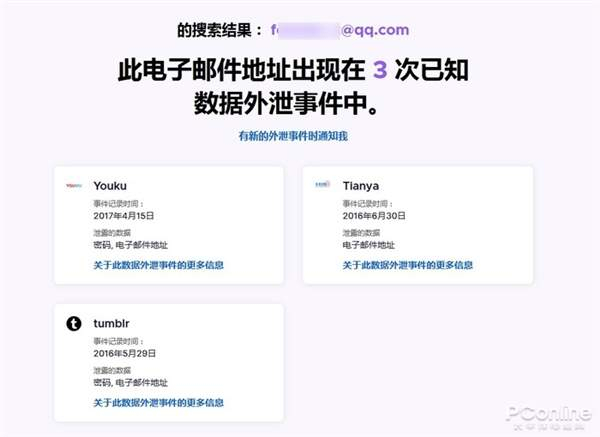 只需要访问上面的网址,就可以知道自己的账号密码泄漏情况了。在网页中,输入你想要查询的注册邮箱,然后点击下方的“检查是否有外泄事件”,即可得出结果。