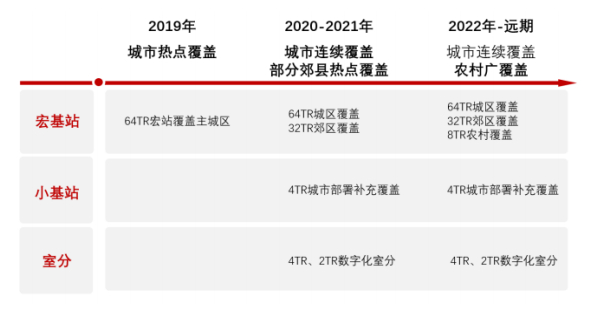 宏基站是广域覆盖的中坚力量,小基站是深度覆盖和容量吸收的重要补充。宏基站是5G网络建设的主力站型,是5G网络连续覆盖的基础。宏基站设备形态以64TR为主、32TR为辅,实现城区高质量低成本建网,主要部署在铁塔、楼顶。小基站适用于站址获取难题的热点区域,设备形态以4TR为主,作为宏基站的补充覆盖。