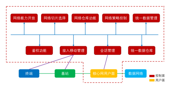 核心网是移动通信网的控制中枢,负责对移动通信网络的管理和控制。核心网包括管理数据信令的控制面和管理用户业务数据的用户面,是一系列控制管理设备的统称。5G核心网架构走向扁平化,控制面和用户面的功能分离使得5G网络在控制面实现集中部署、集中管控、优化重组,在用户面实现功能简化、灵活部署、高效转发。