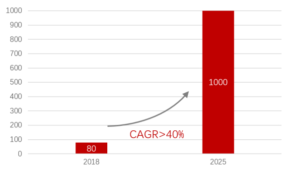 5G带动光器件市场保持稳定增长。根据LightCounting的报告显示,2019年全球光器件市场规模约70亿美元,2023年有望超过120亿美元。5G将带来光模块市场强劲增长,中国移动研究院以建设200万基站为例推算,预计将带来4800万支光模块需求。25G/50G/100G高速光模块将逐步在前传、中传和回传引入,100G/200G/400G高速光模块将在传输汇聚和核心层引入。预计5G光模块需求是4G光模块需求的2倍以上,我国5G光模块和光器件的市场规模将达到200亿元。