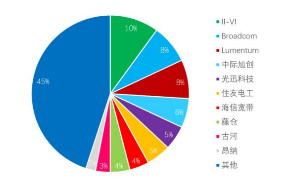我国光通信企业有望进一步扩大市场份额。根据网络电信的研究,美国日本企业依然占据全球光器件市场领先低位,掌握核心光芯片、电芯片、光器件的全球主要份额,美国企业市场占有率约26%,中国企业市场占有率17%,日本企业市场占有率约12%。我国企业进步明显,依靠光模块市场份额的提升,和美国、日本企业的差距在逐步缩小。依靠华为、中兴通讯、烽火通信等下游传输设备制造商的带动,我国光通信企业向中上游不断突破,有望获得更多全球市场份额。国内光模块市场的主要供应商包括苏州旭创、光迅科技、海信宽带、昂纳科技、华工科技、新易盛等。