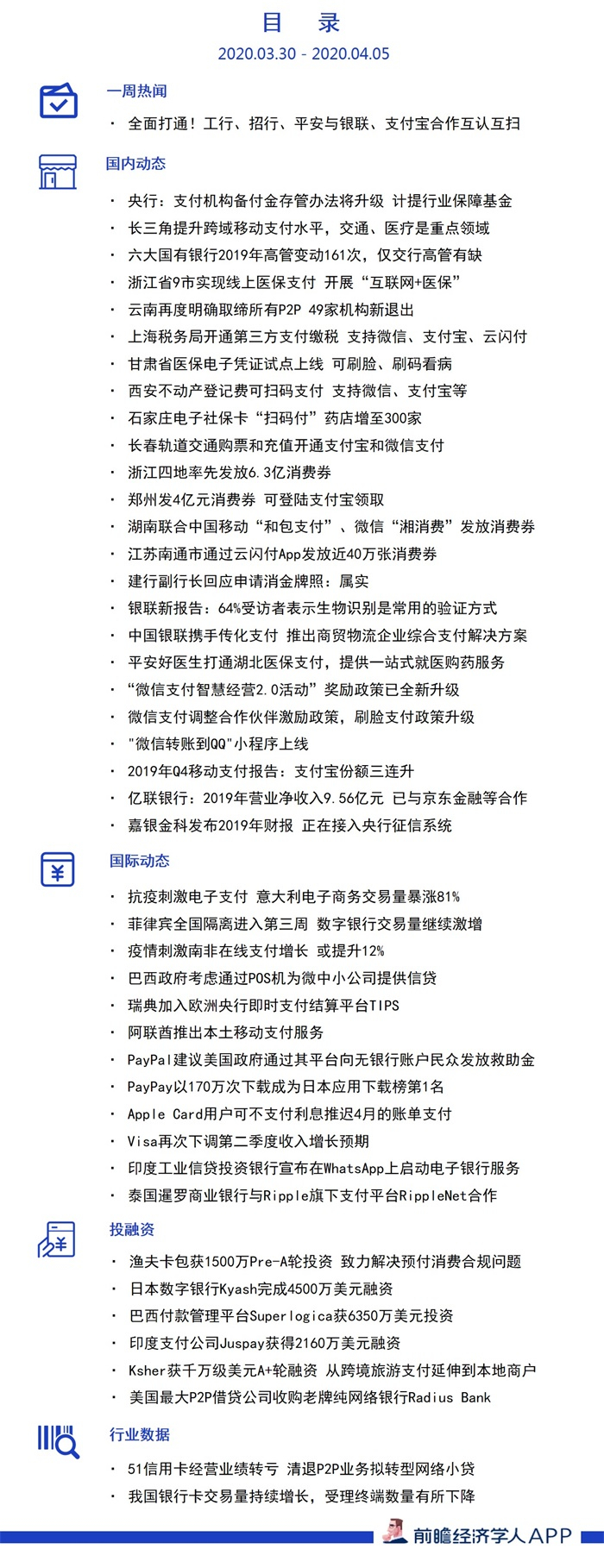 原标题:前瞻移动支付产业全球周报第33期:全面打通!工行、招行、平安与银联、支付宝合作互认互扫