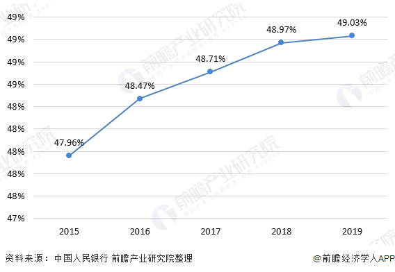 图表2:2015-2019年中国银行卡渗透率变化情况
