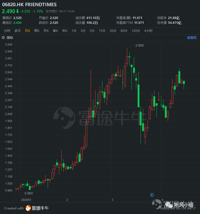 根据Sensor Tower数据,《浮生为卿歌》3月份iOS中国区收入就达到1130万美元,环比增长66%,带动公司收入环比增长42%,同比增长56%。公司股价也是一路上涨,从1港元左右最高上涨至接近3港元。