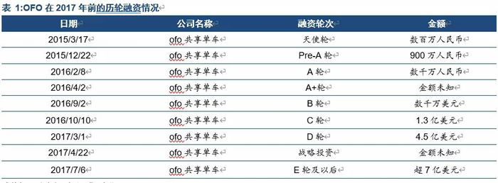 2016年9月和10月,OFO连续获得了B轮和C轮融资,仅C轮融资就达到1.3亿美元。其中包括金沙江创投、滴滴出行等头部创投和产业资本。