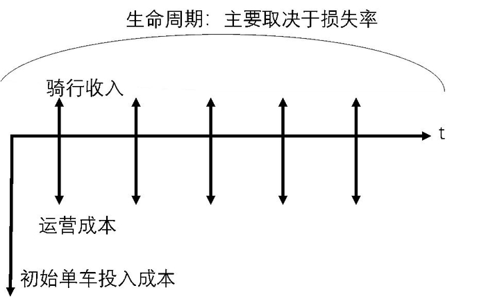 如果不考虑获客成本,共享单车公司的商业模型如下图所示: