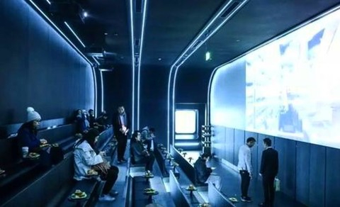 在海底捞的智慧餐厅中,等位区改变了海底捞传统的“小板凳”、擦皮鞋、美甲,而是华丽升级——海底捞声称的全球顶配版等位区,屏幕的位置就是13*3m的矩形投影屏,支持展示3d动画等各式影片。