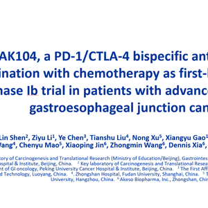2020年4月27-29日,世界上规模最大的癌症研究会议之一,美国癌症研究协会第111届年会(AACR 2020)在线上召开。北京大学肿瘤医院院长季加孚教授在会上以海报的形式口头报告了康方生物(香港联交所代码:9926.HK)自主研发、全球首创的PD-1/CTLA-4双特异性抗体新药AK104联合mXELOX一线治疗晚期胃癌或胃食管结合部腺癌的Ib/II期研究初步结果。