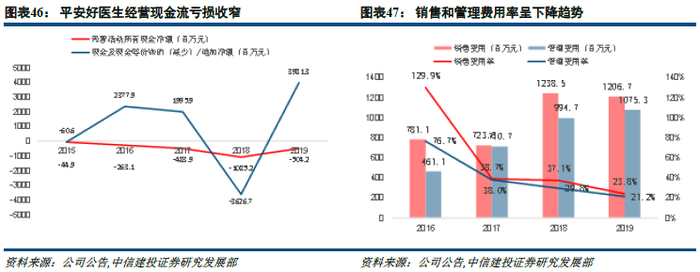 虽然平安好医生正大力发展私家医生会员产品,但是从平安好医生整体业务来看,这部分收入占比还不够高,其仍并不属于典型的订阅服务模式,且私家医生推出时间仅半年不到,因此仅从三表上来看不能明显体现其对公司的影响,但是从经营现金流看来2019经营活动产生的现金净额自近五年来首次收窄,现金及现金等价物也有大幅提升,这是由于2019年部分得益于私家医生的推出因此合同负债有所增加。公司预期私家医生产品未来五年将服务1000万家庭,未来将会是个百亿级市场,并将在不远的未来整体实现盈亏平衡,如果发展如企业预测,那么公司将很快进入到订阅服务公司意义上的第二发展阶段。