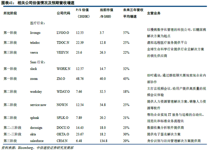 针对医疗行业这个细分赛道来说,其行业特点在于用户的需求更强烈,而对于企业会要求更高的专业性,下文将针对上文提出的生命周期三阶段分别以美股中专注于医疗行业的三家公司——Livongo、Teladoc以及Veeva进行相对应的阐述与比较。