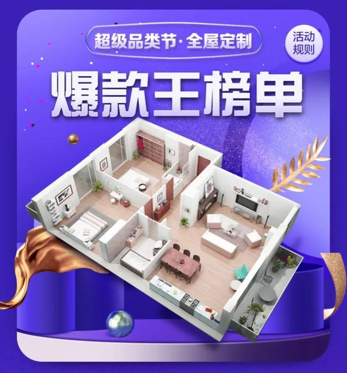 同期,此次超级品类节•全屋定制还在活动小程序上,重磅推出了首个主打爆款的2020超级品类节•全屋定制【爆款王榜单】。这份榜单的评判将全权交给消费者,甄选最符合消费市场的爆款产品,并借此与消费者达成良性互动,深度运营精准消费客群。