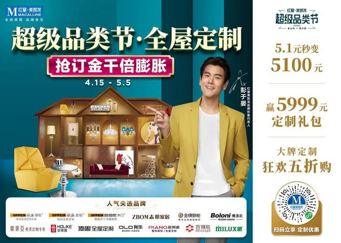 此次超级品类节•全屋定制已于4月15日正式启动,抢先引爆红星美凯龙“5•1爆服让利”,抢订金千倍膨胀,大牌定制狂欢五折购,5999元定制礼包等你赢,打造2020年家居行业定制品类营销主战场。