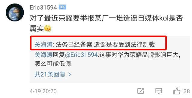 荣耀起诉造谣者