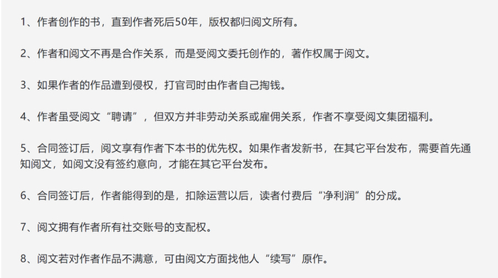 “重点是版权,阅文一个中介平台,有什么资格压榨吸血作者著作权。”