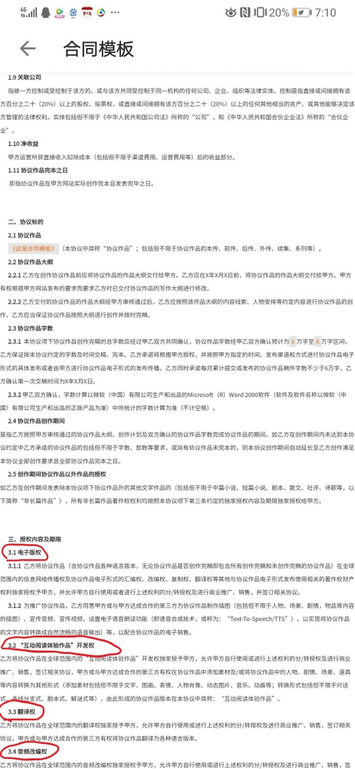 盒饭财经联系到了阅文作者关关,拿到了系统上《文学作品独家授权协议》的合同模板(5月5日晚19:10从后台获取截图)。
