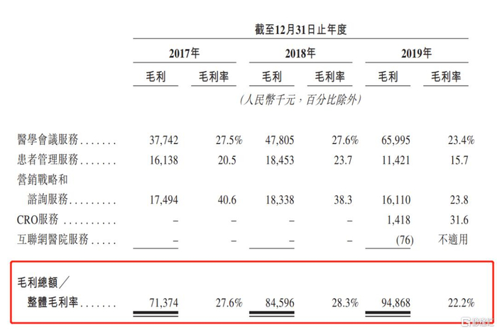 再来看新增的CRO业务和互联网医院的表现,招股书提到,公司的CRO服务包含协助客户收集及记录临床试验的患者数据、监督所记录数据真确及准确性、审阅及整理数据纪录以及向患者作跟进探访。和药明康德的CRO不同,麦迪卫康的CRO只是提供基本的数据收集,并不具备更为核心的研发服务能力。