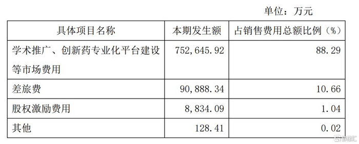 事实上,一款药品上市后,由于前期研发成本很高,售价中药品生产成本占比非常低,销售规模对利润的影响至关重要,这让企业在销售开支上非常慷慨,而d销售费用中占大恶头就是学术推广费。