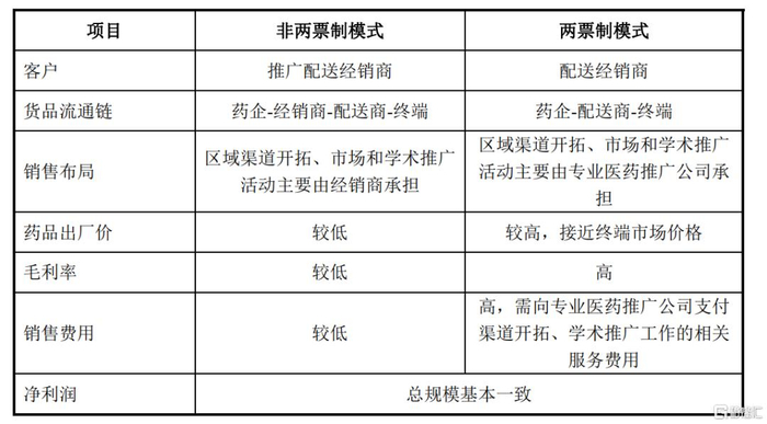 两票制是指药品从出厂到进入终端医院,只能开具两次发票,即药品生产企业将药品销售给配送经销商开具一次发票,配送经销商将药品销售给医院再开具一次发票。两票制的实施使得之前由经销商负责的学术推广变成由药企自身承担,学术推广产生的费用也因此被记入销售成本之中。