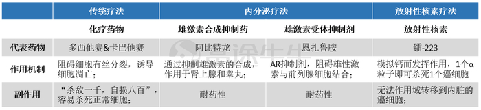 内分泌疗法有雄激素合成抑制药和雄激素受体抑制剂。雄激素合成抑制药有阿比特龙,由强生制药公司开发,通过抑制雄激素的合成来发挥作用,可阻断肾上腺和睾丸中雄激素的生物合成;雄激素受体抑制剂有恩扎鲁胺(开拓药业的普克鲁胺属于此类),是一种AR抑制剂,切断雄激素作用于前列腺细胞的途径。
