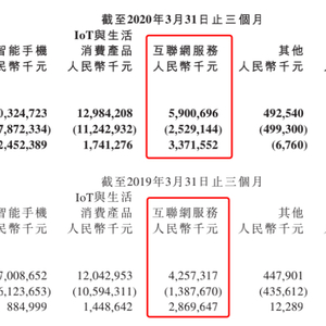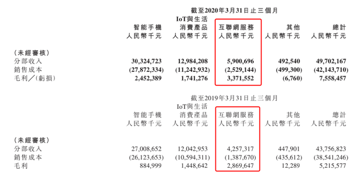 财报提及,互联网服务销售成本增长主要是由于金融科技业务的成本增加,2020年第一季度,受疫情影响,小米增加了金融科技业务的减值拨备。