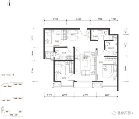 再就是由于全部位于中间户,所有的卫生间都是暗卫。