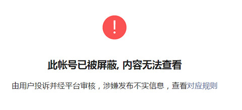 目前,点击“至道学宫”微信公众号文章,微信会提示:此账号已被被屏蔽,内容无法查看,由用户投诉并经平台审核,涉嫌发布不实信息。