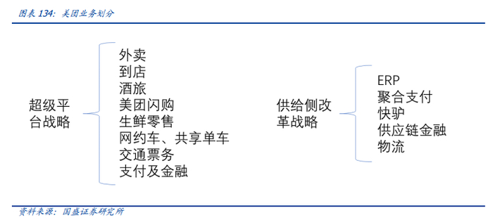 目前美团 DAU 为 0.63 亿,我们预计其 5 年内可达到 2 亿以上的 DAU。美团在超级平台路上的进一步的布局包括: