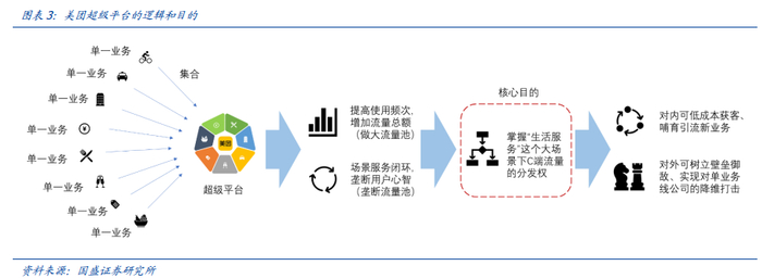 美团希望搭建一个拥有庞大DAU 规模的超级平台(我们预计在2 亿以上),以增强自身壁垒,同时哺育引流新业务,实现对单业务线公司的降维打击的目的(目前美团DAU 约0.63 亿)。