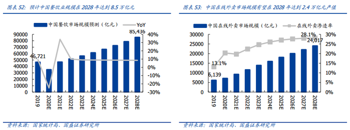 随着餐饮业发展和渗透率提升,我国外卖产业规模在 2028 年有望达到 2.40 万亿。若美团保持目前65%的市占率,则到 2028 年美团外卖的 GTV 将达到 1.56 万亿元。