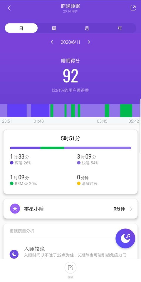 在睡眠监测上,小米手环 5 精度提升了 40%,还支持监测快速眼动期,能够让用户更加了解自己的睡眠状况。用过智能手环的人应该都在晚上看到过「耀眼」的可视绿光,这次小米手环 5 NFC 版额外支持红外监测,减少对夜晚睡眠的打扰。午睡也是一天当中给身体补充能量的重要时刻,新增的零星小睡模式支持对午睡的监测,这样一来,总算能够全面了解整天的睡眠状况了。